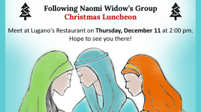 Following Naomi Widow’s Group Christmas Luncheon Meet at Lugano's Restaurant on Thursday, December 11 at 2:00 pm for our Christmas Luncheon. Hope to see you...