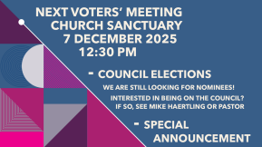 Voters' Meeting Sunday, December 7 at 12:30 pmIn the Sanctuary - Council Elections We are still looking for nominees!Interested in being on the council? If so...