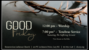 Good Friday is the second part of the three-day service called the Triduum. This Friday we call good is a time of somber reflection as we are attentive to the mystery...