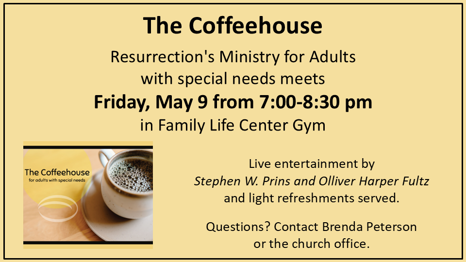 We thank all of our faithful volunteers who help us to have wonderful Coffeehouses. We couldn't do it without you! Please join us.