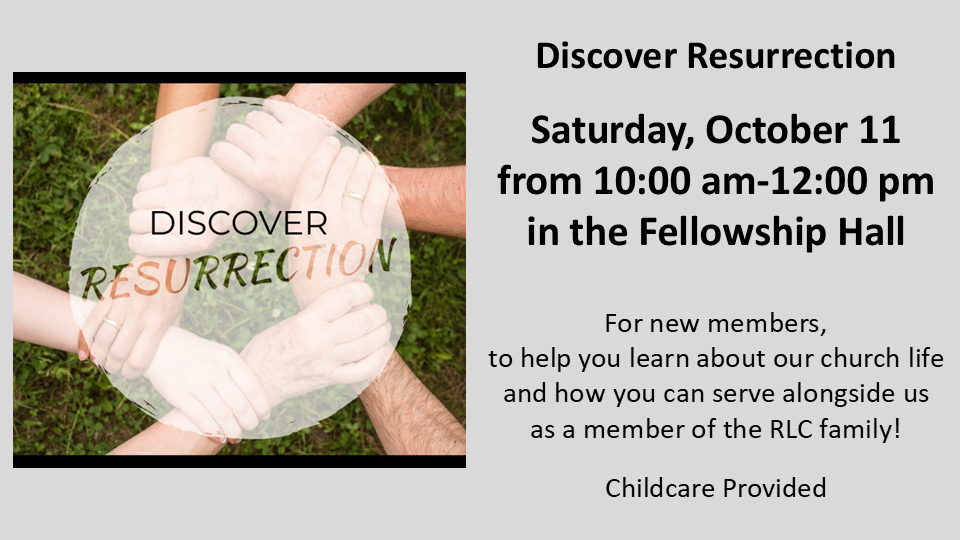 It is at this event that we take a closer look at how we do life together at RLC. Anyone interested in doing so is then invited to officially join our Resurrection family. Childcare is provided upon request.