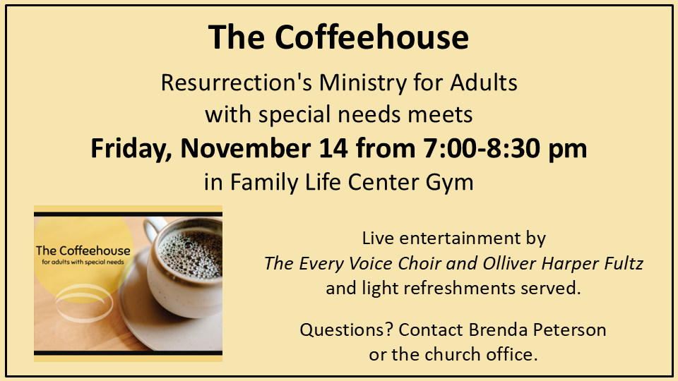 We thank all of our faithful volunteers who help us to have wonderful Coffeehouses. We couldn't do it without you! Please join us.