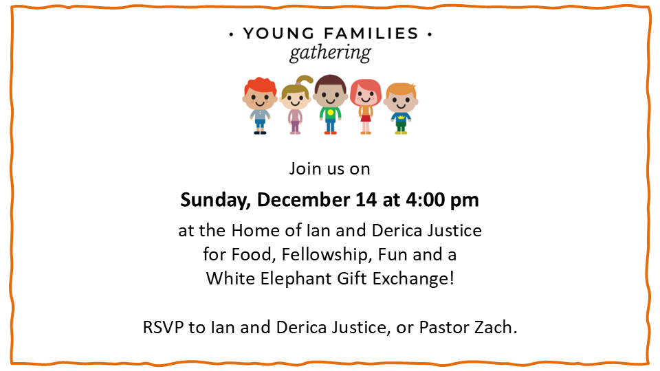 RSVP to Ian and Derica Justice, or Pastor Zach.