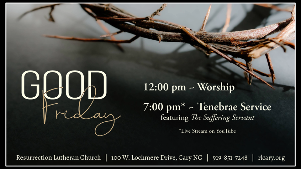 7:00 pm ~ Tenebrae Service in the Sanctuary featuring The Suffering Servant
