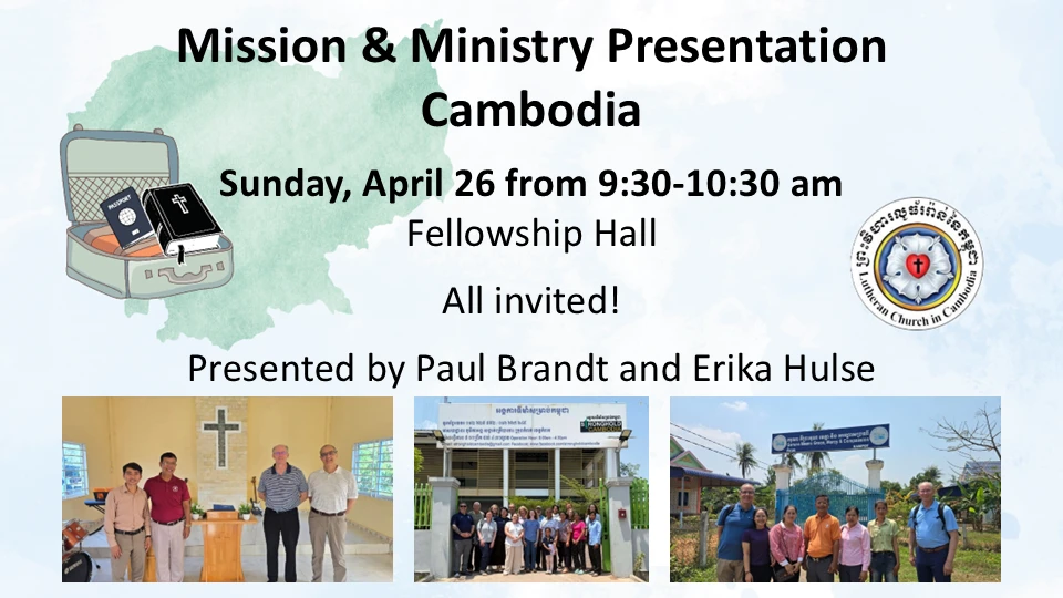 Sunday, April 26, 2026, 9:30 AM - 10:30 AM Location: Resurrection Lutheran Church, 100 W. Lochmere Drive, Cary, NC US 27518Coordinator: Paul BrandtDownload: Download Event