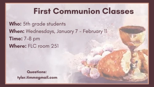 First Communion instruction for 5th grade youth (and others interested) is being held Wednesdays, 7:00-8:00 pm from January 7-February 11 in Room 251, Family Life Center. We will be using This Is the Feast: Preparing for the Lord’s Supper (CPH). Students are asked to watch the movie, Prince of Egypt before the first class.