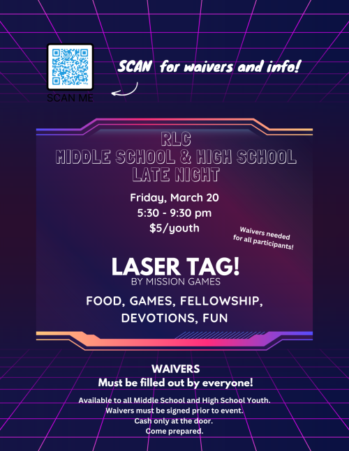 Greetings, RLC Youth Families! Lots of fun adventures are filling our calendar for March, check out the news below.